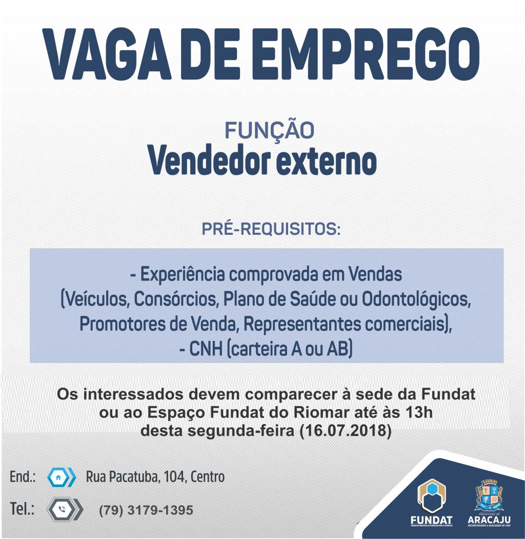 A Fundação Municipal de Formação para o Trabalho (Fundat), por meio da Agência do Trabalhador, setor responsável pelo encaminhamento de cidadãos ao mercado de trabalho, está com mais uma oportunidade de emprego. Desta vez, a vaga ofertada é para a função de vendedor externo.