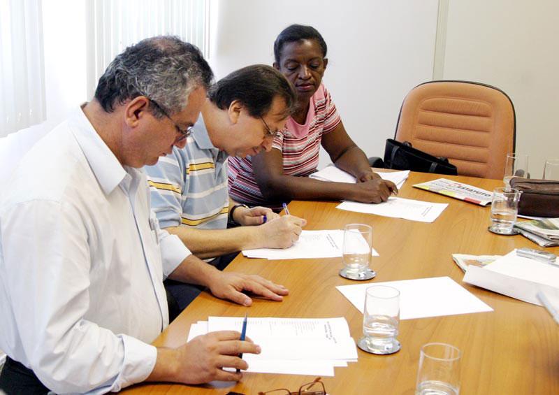 Os secretários municipais Sílvio Santos (Governo e em exercício na chefia de Gabinete do prefeito), Oliveira Júnior (Finanças) e Francisco Dantas (Administração) participaram hoje, dia 27, da primeira reunião com os representantes do Sindicato dos Servidores Públicos Municipais de Aracaju (Sepuma) para discutir a reformulação da tabela de interníveis salariais dos servidores da prefeitura. O encontro aconteceu no Centro Administrativo Prefeito Aloísio Campos com a participação do presidente do sindicato, Nivaldo Fernandes, da vice-presidente, Marinalva Santos, e do membro da diretoria, Getúlio Nunes. Tanto a administração do município quanto os membros do Sepuma avaliaram a reunião de forma extremamente positiva e, juntos, definiram um calendário de discussões que deverá resultar na reformulação da tabela de interníveis num prazo de aproximadamente 90 dias. Partimos de um ponto de convergência entre o que pensa a prefeitura e a reivindicação histórica do sindicato. A tabela está achatada e precisa ser revista para que possa atender os servidores num prazo de pelo menos mais dez anos, explicou o secretário Sílvio Santos. O custo desta reformulação para a prefeitura terá que ser avaliado, inclusive em suas repercussões legais e continuidade dos serviços que a administração municipal presta à comunidade, acrescentou ele numa referência à Lei de Responsabilidade Fiscal (LRF). Para Nivaldo Fernandes, a reunião foi produtiva. Estamos confiantes de que vamos conseguir apresentar uma tabela que atenda os anseios dos servidores, considerando seu tempo de serviço e qualificação técnica. Eu acredito que a gente vai conseguir chegar lá, afirmou. A próxima reunião entre os secretários municipais e os representantes do Sepuma está marcada para a próxima terça-feira, 3 de outubro, às 16 horas, também no Centro Administrativo da prefeitura.