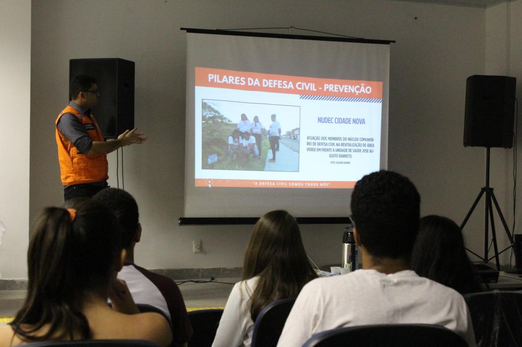 A Secretaria Municipal da Defesa Social e da Cidadania (Semdec), por meio da Defesa Civil de Aracaju, participou, na manhã desta quinta-feira, 26, de um debate sobre redução de riscos e desastres e o papel da comunicação. A atividade, desenvolvida na Universidade Federal de Sergipe (UFS), possibilitou que alunos do curso de Jornalismo obtivessem conhecimento sobre os mecanismos de atuação e funcionamento da Defesa Civil na capital.