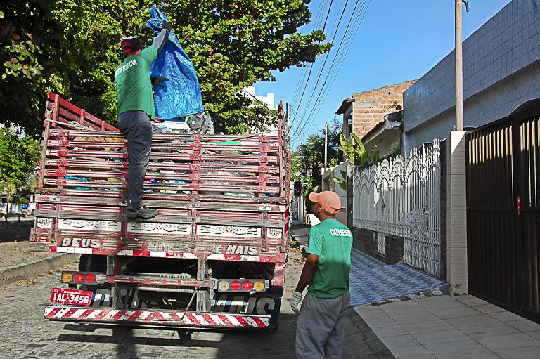 “Toda semana separo as embalagens plásticas e papelão consumidos em meus estabelecimento. Tenho dois reservatórios destinados só para isso. Eu oriento também a alguns dos meus clientes que já criaram o hábito de depositar seus resíduos recicláveis aqui na porta. É importante que cada um faça a sua parte”, destacou o comerciante Luciano Passos, que, há quatro anos, utiliza o serviço de coleta seletiva em sua mercearia, localizada no conjunto Médici, bairro Luzia.