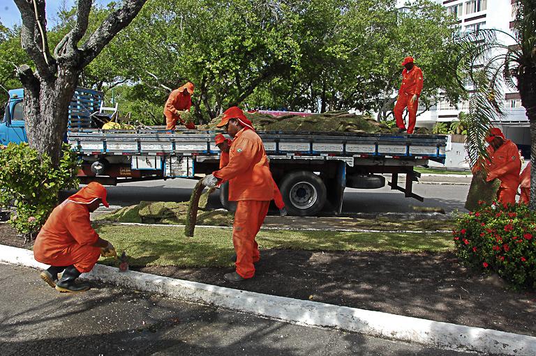 Os agentes fazem a limpeza com capinação e retirada do excesso de galhos e folhas do local. Em seguida é feito o plantio das placas de grama esmeralda e mudas ornamentais, a exemplo da ixora, um espécie de arbusto florífero que tem a resistência em ambientes externos como sua principal característica. Em algumas localidades são utilizados também nos projetos de paisagismo, pneus inservíveis, recolhidos pelas equipes da Diretoria de Operações e pedras.