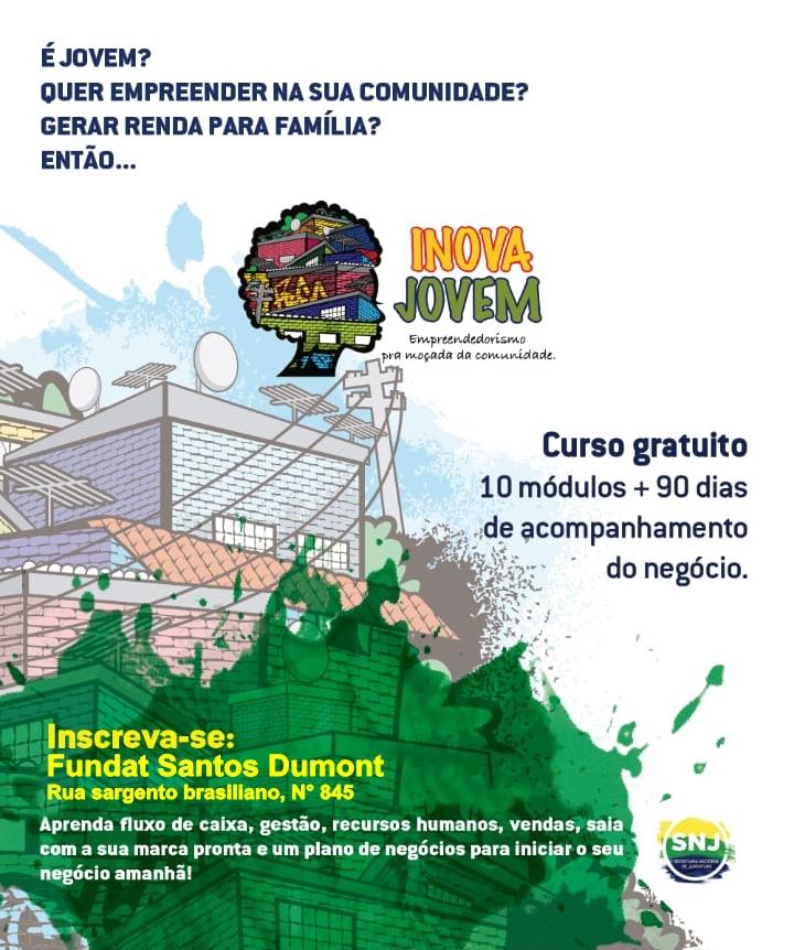 Após o sucesso entre os novos empreendedores aracajuanos, vem aí a segunda edição do Inova Jovem. O projeto faz parte do plano da Secretaria Nacional da Juventude (SNJ) e oferta curso gratuito de empreendedorismo com direito a diploma para jovens entre 18 e 29 anos. Para quem já tem, ou pensa em realizar o grande sonho do próprio negócio, as inscrições vão de 6 a 17 de agosto, na Unidade de Qualificação Profissional da Fundat, no bairro Santos Dumont. É necessário apresentar RG, CPF, comprovante de escolaridade e de residência na hora da preencher a ficha de inscrição.