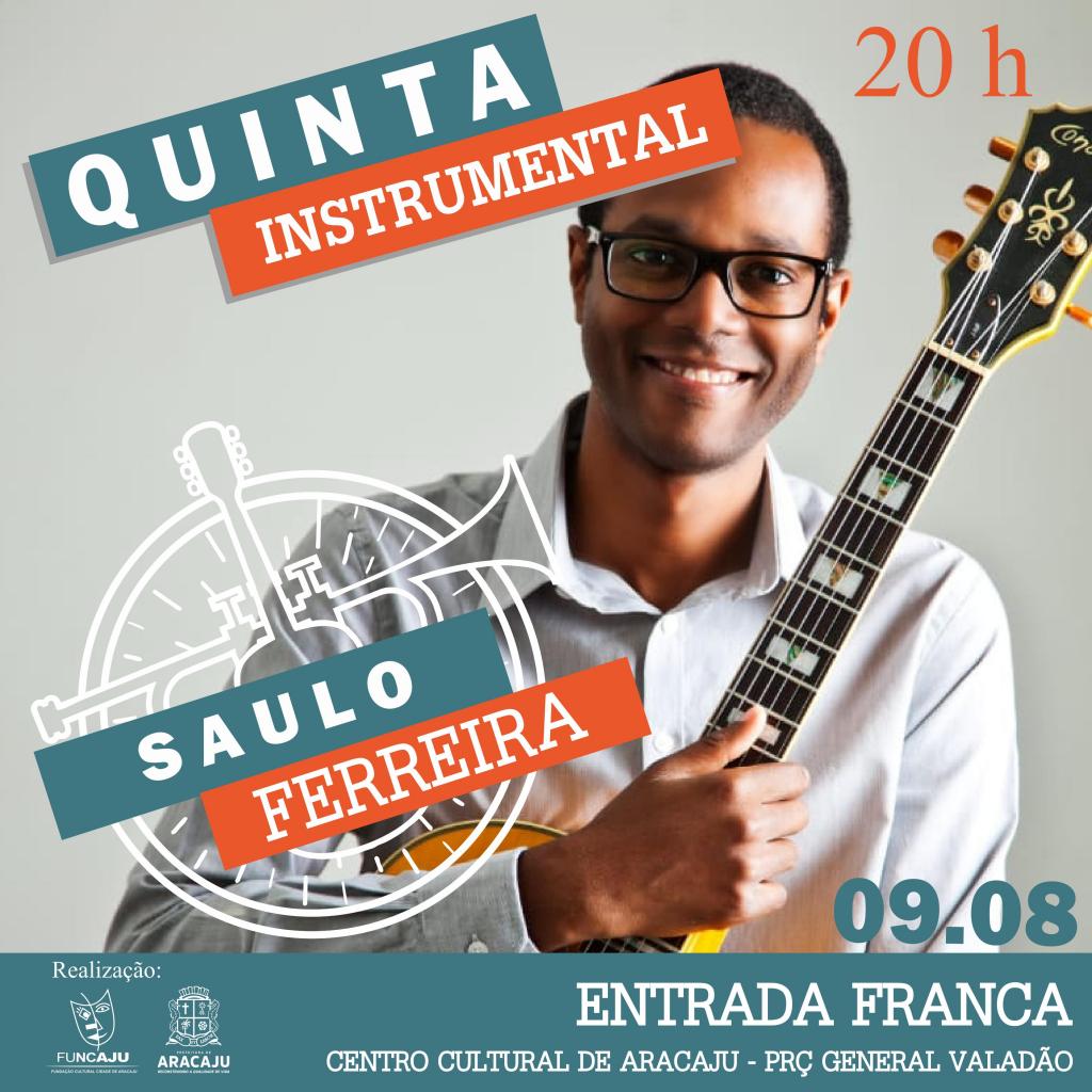 Guitarrista, compositor e professor de música da Universidade Federal de Sergipe, o artista Saulo Ferreira realizará show, pela primeira vez, no ‘Quinta Instrumental’, no dia 9 de agosto, a partir das 20h. O projeto é uma realização da Fundação Cultural Cidade de Aracaju (Funcaju) e acontece, gratuitamente, no Centro Cultural da capital.