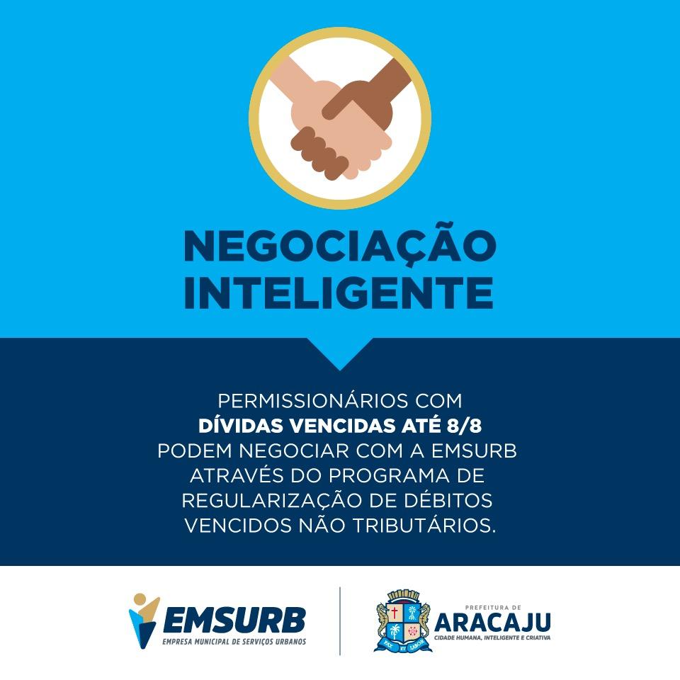 Permissionários inadimplentes junto à Empresa Municipal de Serviços Urbanos (Emsurb) poderão regularizar sua situação financeira, em condições especiais, mediante redução de juros e mora, graças ao Programa de Regularização de Débitos Vencidos não Tributários (PRDVT), instituído por meio da Resolução Nº 005/2018, de 31 julho de 2018. Esta é a primeira vez que a Prefeitura de Aracaju, por intermédio da Emsurb, disponibiliza a condição. A iniciativa foi autorizada pelo próprio prefeito Edvaldo Nogueira.