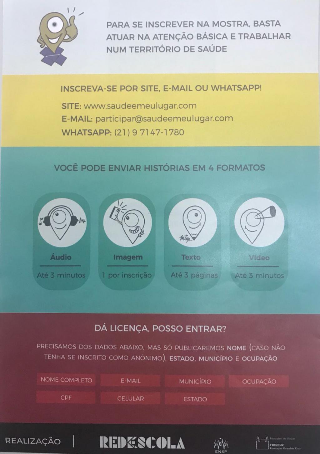 Para a mostra presencial serão selecionados os trabalhos publicados no site, e as histórias escolhidas, além de serem apresentadas na mostra principal, que vai acontecer no dia 20 de setembro, receberão um certificado pela FioCruz.