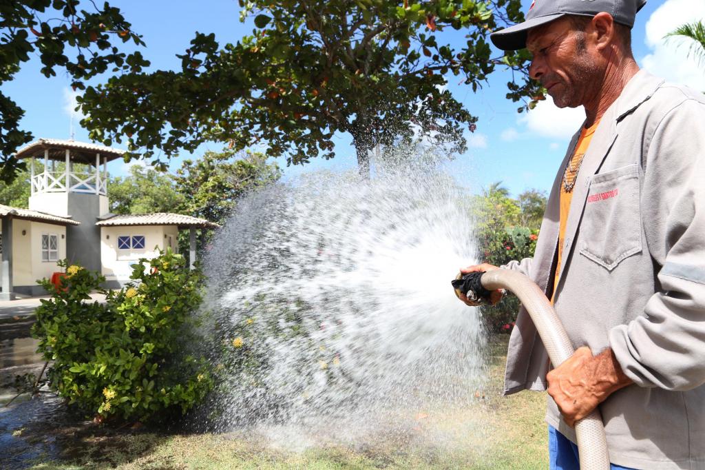 A água destinada para este fim vem de poço, portanto, imprópria para consumo humano. Por dia, são destinados para irrigação em média 250 mil litros. “Esse quantitativo é de janeiro até hoje. Cada caminhão leva 35 mil litros de água. É importante deixar claro que não há desperdício. Tudo é feito de forma planejada”, contou.