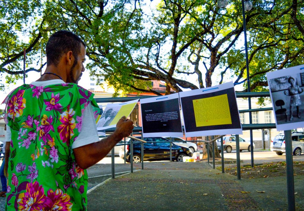 Além de diversas apresentações artísticas, quem passou pela Praça Camerino também pode visualizar um varal de histórias. Nele, usuários do Centro Pop relataram os desafios e os percursos trilhados que os levaram a ter na rua seu maior espaço de sobrevivência. Histórias como a de Antônio Carlos, de 32 anos. Conhecido como Quinô, ele conta que parou nas ruas após a separação dos pais. Foi por volta dos sete anos, quando teve que se tornar engraxate e acabou se tornando dependente de substâncias psicoativas, como a cola de sapateiro. “Mas uma coisa eu digo: nesses anos todos, graças a Deus, nunca roubei. Não me tornei um marginal”.