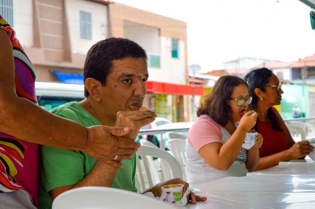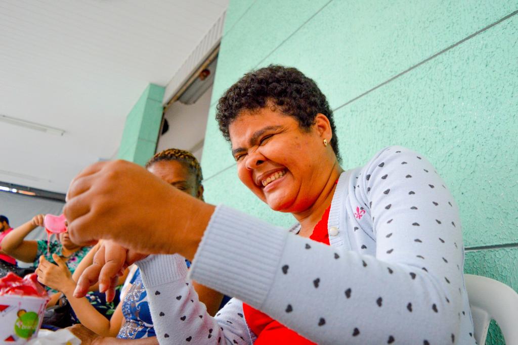 Isabela Cardoso tem 32 anos e é usuária do Centro Dia. Ela escolheu duas bolas de sorvete: uma de mangaba, fruta típica sergipana, e outra de chocolate. Para Isabela, ir até a sorveteria e comprar o próprio sorvete é uma alegria muito grande. “Vim comprar meu sorvetinho, que está uma delícia. É sempre bom participar de passeios como esse com os meus amigos. O Centro Dia é a minha segunda família”.
