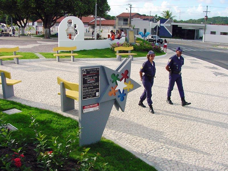 Desde que foi completamente reestruturada pela Prefeitura de Aracaju, há pouco mais de um ano, a praça Siqueira de Menezes, na Colina do Santo Antônio, vem merecendo atenção especial por parte da Guarda Municipal de Aracaju. Por determinação do prefeito Marcelo Déda, atendendo reivindicação da população do bairro Santo Antônio, a presença da Guarda Municipal no local tem sido constante. O objetivo é cuidar da preservação do patrimônio público e dos seus usuários num dos mais belos cartões postais do Estado. Eles estão presentes na colina 24 horas por dia, ininterruptamente. São quatro equipes com dois guardas cada uma, que se dividem em turnos, informou o comandante da Guarda Municipal, capitão PM Eduardo Henrique. Outros pontos que também recebem a proteção da GM são o calçadão da 13 de Julho, a orla do bairro Industrial e a praça do mini-golf, além das demandas administrativas relacionadas a prédios públicos, como escolas e postos de saúde. Os moradores e freqüentadores da região da colina do Santo Antônio aprovam a medida e acreditam que a presença dos oficiais inibe a ação de delinqüentes no local. Essa é a opinião da aposentada Maura Silva Freitas, que há 42 anos mora no bairro e agora aproveita com segurança o espaço. A presença dos guardiões é muito importante, porque se não fossem eles essa praça já estaria acabada, declarou, condenando a ação de vândalos em outros pontos da cidade. Segundo a guardiã Evelyne Farrapeira, por enquanto as únicas dificuldades que ela e seu parceiro de turno Carlos Ranulfo tem encontrado no trabalho na colina tem sido quanto aos donos de cães que levam os seus animais para a praça. Nós pedimos para que retirem os animais e eles atendem, reclamando, mas retiram. Algumas pessoas rabiscam, ou picham as paredes e nós mandamos limpar, mas nada muito sério, contou.