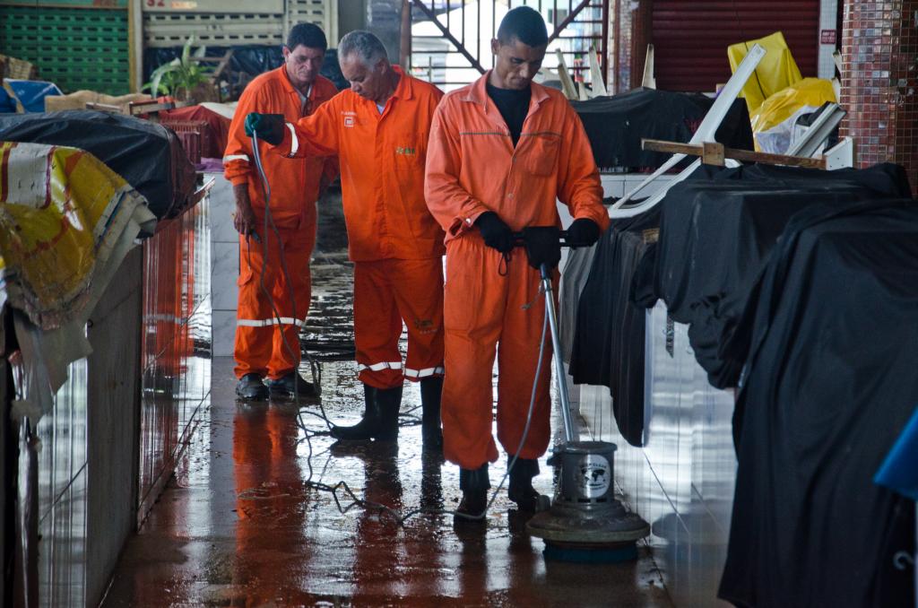 Os agentes entraram em campo para fazer a varrição, retirada de resíduos e lavagem do piso e das bancas do setor de hortifruti. Já no setor de confecções, outra frente de trabalho foi estabelecida com os serviço de dedetização e desratização.