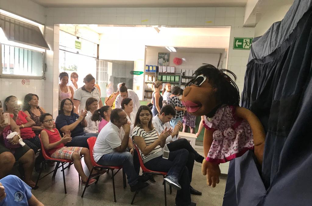 A tarde desta segunda-feira, 17, começou diferente para os usuários da Unidade Básica de Saúde (UBS) Geraldo Magela, da Secretaria Municipal da Saúde (SMS). Eles foram surpreendidos com o teatro de fantoches do Projeto Anjos Azuis, da Guarda Municipal de Aracaju (GMA).