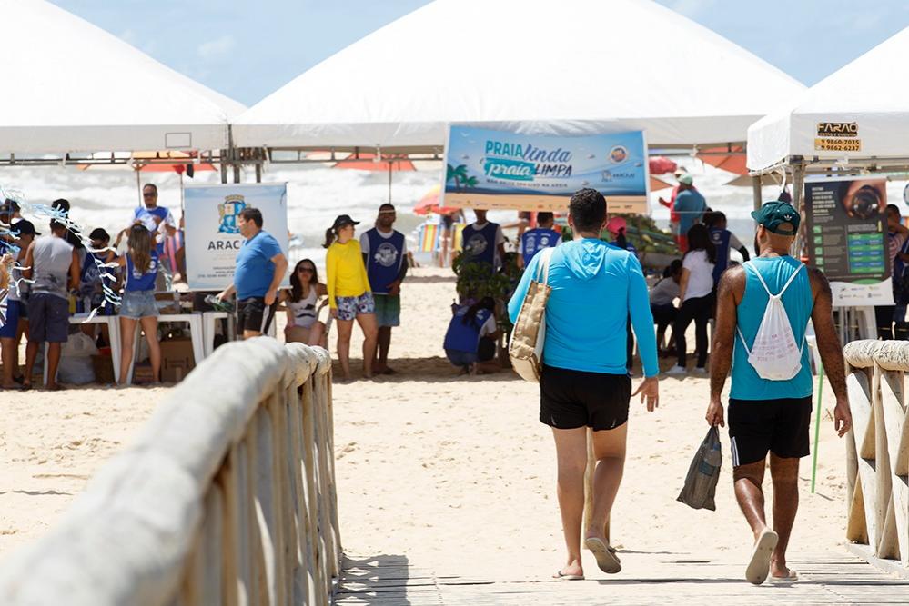 Quem buscou a Praia de Atalaia neste domingo, 23, como uma alternativa de lazer com a família e amigos teve a oportunidade de participar de atividades que objetivaram sensibilizar os cidadãos à adoção de práticas mais conscientes, a exemplo do descarte correto de resíduos e respeito aos animais marinhos, em prol da conservação do meio ambiente. Foi assim que a Prefeitura de Aracaju, por meio da Secretaria Municipal do Meio Ambiente (Sema), com o apoio de diversos parceiros, realizou a segunda edição do programa Praia Limpa.