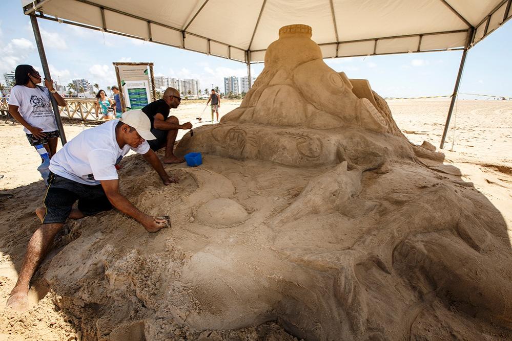Outra ação que também chamou a atenção dos frequentadores da praia foi a escultura de areia, que durou cerca de 8 horas para ficar pronta. O monumento enfatizou as consequências à vida marinha com o descarte irregular do óleo de cozinha. A Empresa Municipal de Serviços Urbanos (Emsurb) disponibilizou 22 caminhões-pipa para dar suporte na confecção da escultura. A empresa também fixou 2 caixas coletoras de 5 m³ para a destinação adequada de resíduos.