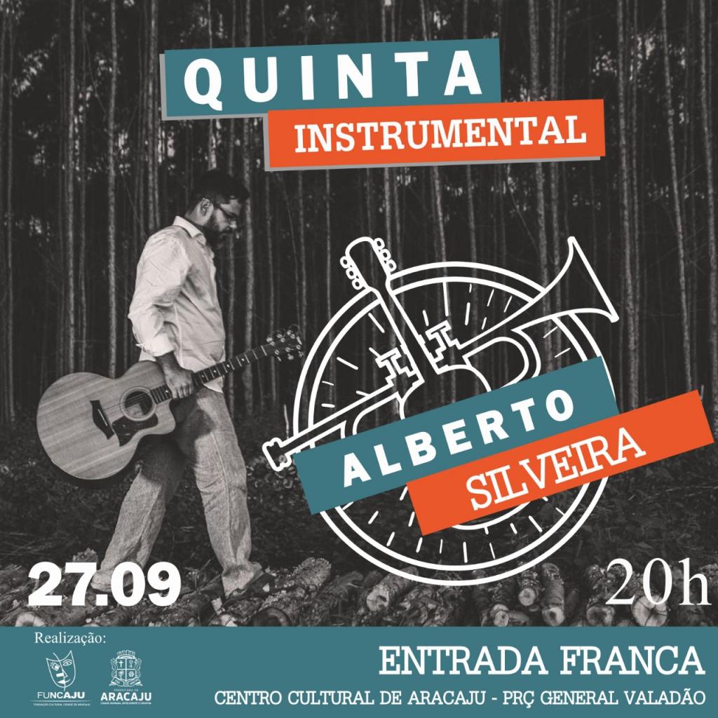 O ‘Quinta Instrumental’, desta semana, trará ao palco do Teatro João Costa, o compositor, arranjador e grande compositor violinista aracajuano, Alberto Silveira. O músico, que toca violão de aço, foi finalista do ‘Alumiar - I Festival de Novas Composições de Forró' e vencedor do ‘3° Festival de Música das Rádios Públicas do Brasil - Arpub'.