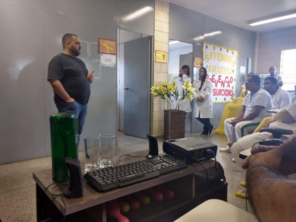 Dando continuidade às ações do Setembro Amarelo, mês dedicado à prevenção do suicídio e à proteção da vida, a Secretaria Municipal da Saúde (SMS) realizou uma palestra de conscientização com os trabalhadores do Complexo Penitenciário Advogado Jacinto Filho (Compajaf).