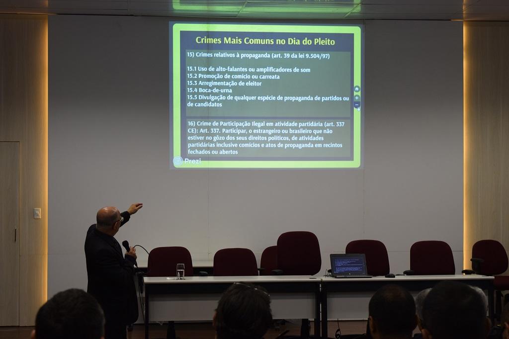 A palestra apresentada por Marcelo Gerard, coordenador de Planejamento, Estratégia e Gestão, do Tribunal Regional Eleitoral de Sergipe, teve o objetivo de debater a legislação eleitoral, com o propósito de orientar as condutas dos agentes de segurança pública diante do flagrante de crimes eleitorais. "Essa exposição tem o objetivo de transmitir informações sobre crimes eleitorais e as condutas dos agentes de segurança no dia do pleito. A conduta e a atuação da Guarda Municipal em Aracaju será bastante importante para coibir crimes eleitorais, bem como quaisquer tipos de propagandas que venham a ser feitas no dia do pleito. Caberá a ela fazer o policiamento ostensivo de diversos locais de votação, coibindo as condutas criminosas que foram apresentadas aqui como crimes eleitorais e condutas vedadas, além de transmitirem informações sobre as condutas dos eleitores e candidatos à justiça eleitoral no âmbito da segurança pública", destaca o representante do TRE.