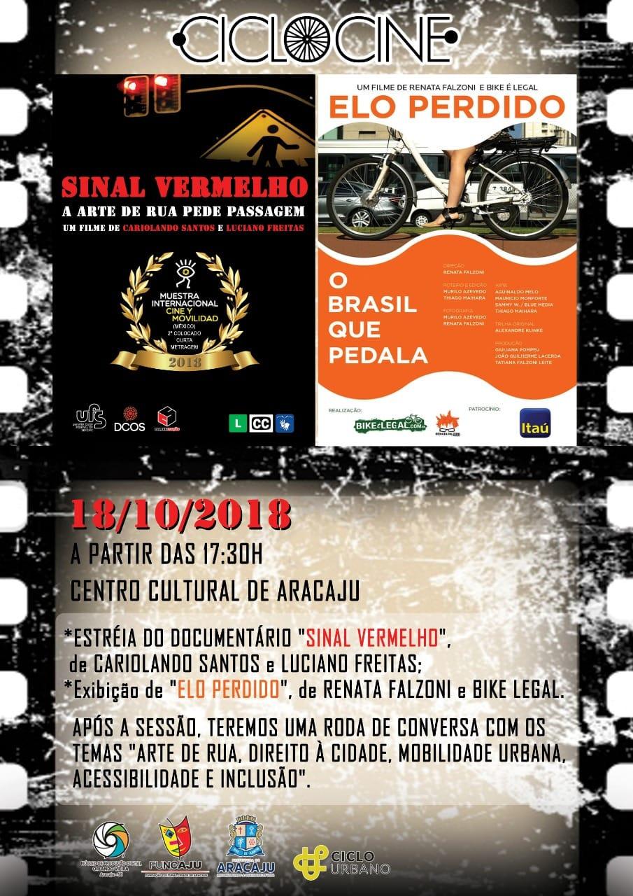 Dirigido e produzido pelos acadêmicos Cariolando Santos e Luciano Freitas do curso de cinema e audiovisual da Universidade Federal de Sergipe (UFS), o curta “Sinal vermelho: arte de rua pede passagem” conta, por meio dos relatos de artistas de rua, sobre o direito às cidades, mobilidade e, principalmente, o consentimento a vida. Além deste, o “Elo perdido: O Brasil que pedala”, com a direção de Renata Flazoni, reflete sobre a realidade de um país que pedala e constantemente luta diante da atual situação de motorização de carros e motos, e analisa também a significativa relação das pessoas como o meio de transporte sustentável, a bicicleta.