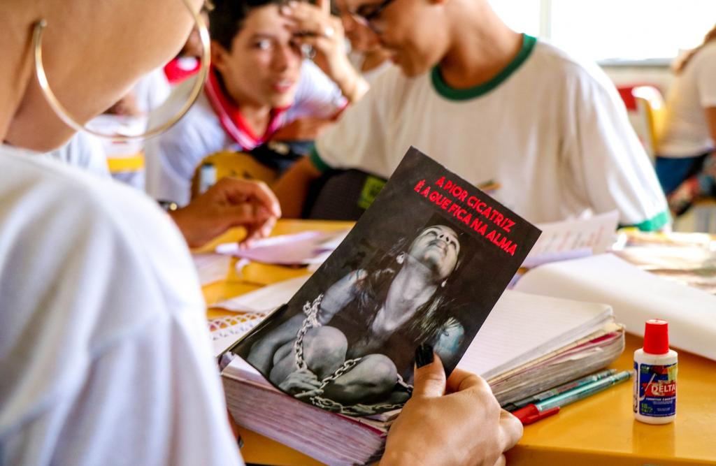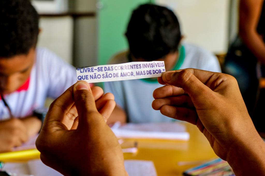 “Uma senhora me viu se aproximando do seu carro e levantou o vidro rapidamente com medo de assaltá-la”, “São muitos os casos de bullying dentro da escola”, “Os homens devem respeitar as suas mulheres e tratá-las com amor”. Essas foram algumas das frases ditas pelas meninas e meninos que participaram do último dia da ação na instituição de ensino, que mostraram que os adolescentes podem até ter idades, perfis e histórias diferentes, mas os relatos em que muitos foram vítimas ou praticantes de atos de repúdio por não aceitarem a condição do ser diferente de algumas pessoas são muito parecidos.