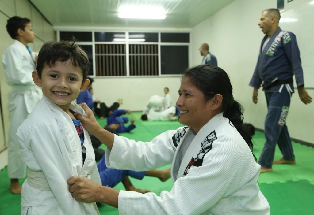Não basta ser mãe, é preciso participar. A salgadeira Maura Elisângela da Silva segue a frase à risca. Ela faz aula de jiu-jitsu com o filho Arthur Lucas Miranda no Centro de Treinamento da Guarda Municipal de Aracaju. Os dois praticam a modalidade há seis meses. “Eu me inscrevi para incentivá-lo, pois percebi que o jiu-jitsu é um esporte que oferece disciplina, ajuda a criança no desempenho escolar. Arthur melhorou até nas atividades de casa”, contou orgulhosa.
