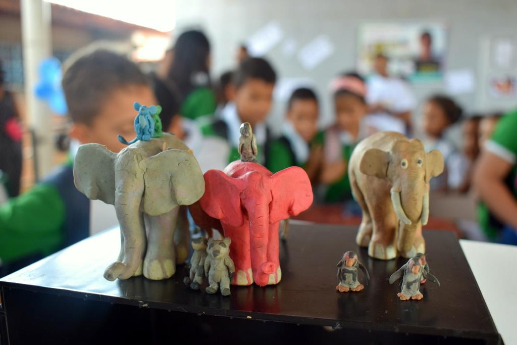 Leões, elefantes, pássaros. As esculturas em massa de modelar impressionam pelos detalhes. Assistindo a um desenho animado na televisão ou vendo pessoalmente os animais, Felipe já consegue se inspirar para representá-los através da sua arte. “Antes mesmo de começar a ler e a escrever, ele passou a desenhar e vimos que os desenhos eram muito bons e passamos a estimulá-lo”, conta a advogada Neurilândia Freitas Santos, mãe do estudante. “A gente sabe que existe uma barreira em relação ao novo, mas, quando as pessoas tendem a conhecê-lo, são conquistadas porque ele é bem carinhoso e cativante. Fomos fazendo esse trabalho e a escola nos abraçou. Fizemos uma pesquisa e encontramos aqui um ambiente gostoso para ele”, completa.