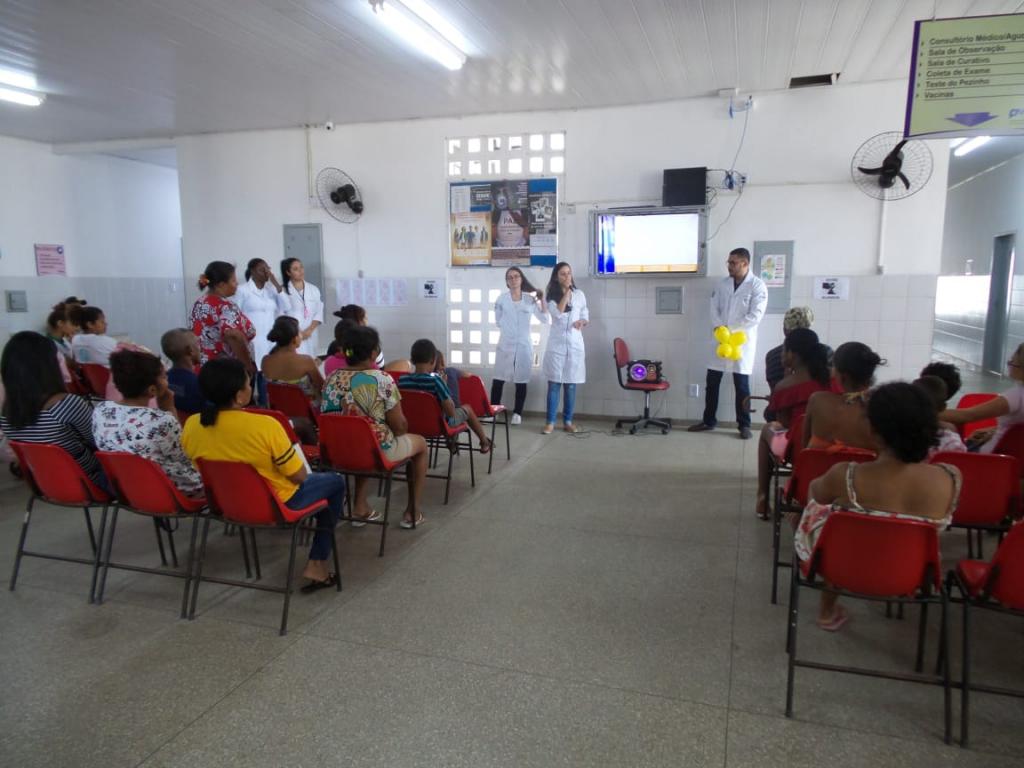 E como fechamento das atividades do Outubro Rosa, mês dedicado à prevenção do câncer de mama e de útero, os médicos residentes da Universidade Federal de Sergipe (UFS), que fazem a residência multiprofissional na UBS Eunice Barbosa, se uniram aos estagiários do 7º período de Enfermagem e promoveram uma ação lúdica com dramatização sobre a importância da prevenção na sala de espera, também nesta terça-feira.