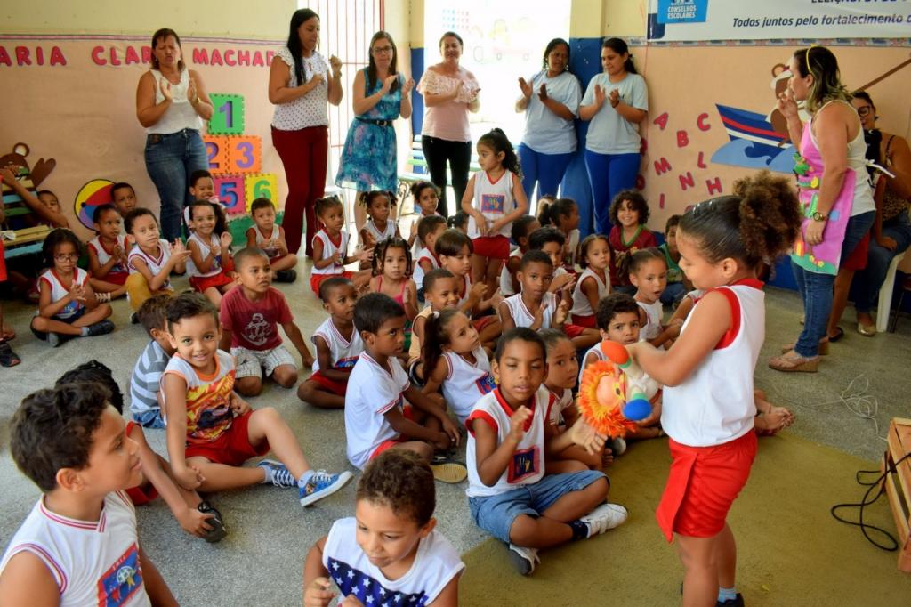 Durante o encerramento do projeto, que aconteceu nesta quinta-feira, 1°, a equipe da escola encenou a história da personagem Emília, de Monteiro Lobato, estimulando a imaginação dos alunos e garantindo o direito pleno de ser criança. “A cada dia, inserimos novas práticas, novas temáticas, novas formas de trabalhar os direitos da criança. Sempre contando histórias, exibindo vídeos, confeccionando cartazes. No dia que trabalhamos o direito à alimentação, por exemplo, confeccionamos, junto com eles, uma sala de frutas. Sempre tentamos abordar de uma forma lúdica para que quando eles saírem para o primeiro ano do Ensino Fundamental, já saiam conscientes de que, desde pequenos, já são cidadãos”, complementa Hidebora.