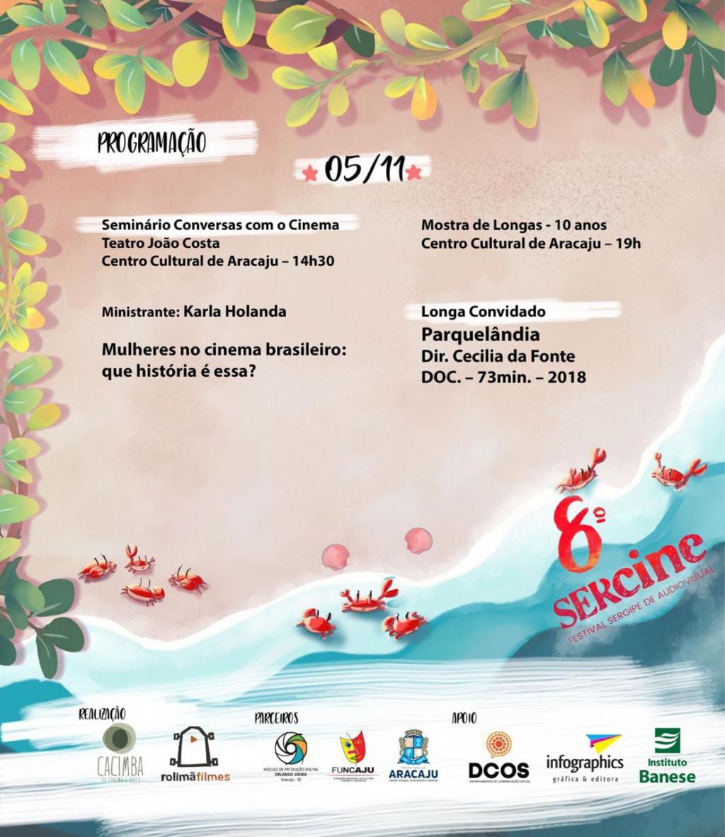 Em sua programação, o Festival Sergipe de Audiovisual conta com o seminário “Conversas com cinema”, ministrado por  Karla Holanda da Universidade Federal de Fortaleza (Cinema/UFF) que abordará o tema “Mulheres no cinema brasileiro: que história é essa?”.