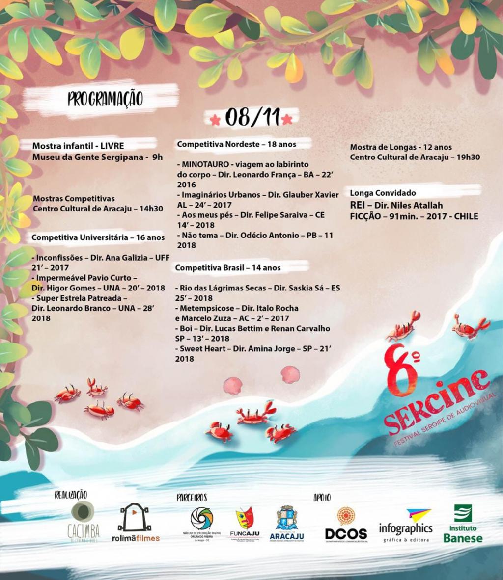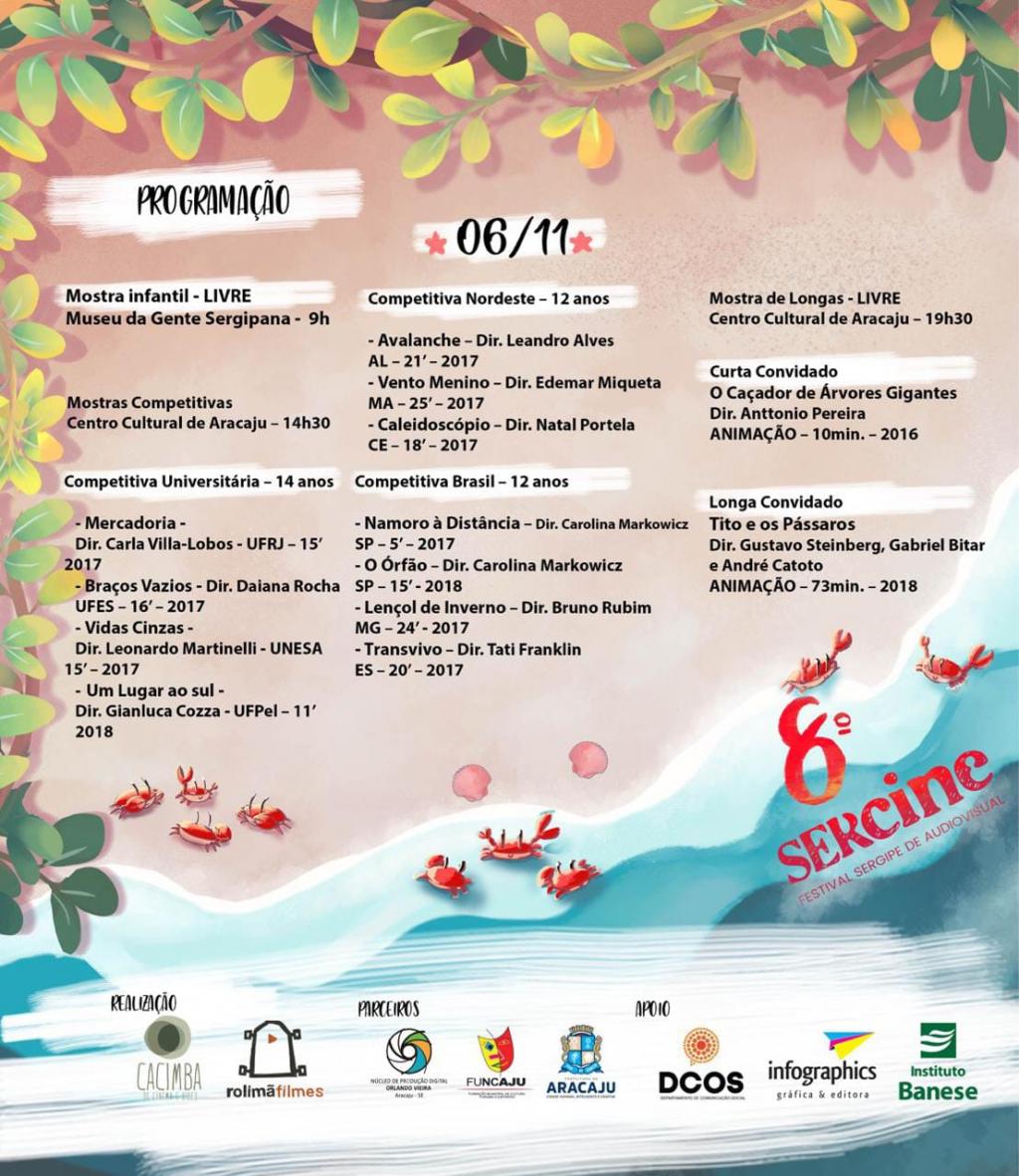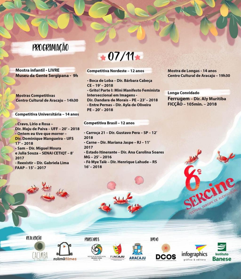 Para os amantes de cinema e arte, o Núcleo de Produção Digital (NPD), unidade da Fundação Cultural de Aracaju (Funcaju), apoia, mais uma vez, o Festival Sergipe de Audiovisual, o famoso ‘Sercine’. Será uma semana inteira de exibições, debates e estímulo a arte brasileira. O evento inicia neste sábado, 3, e vai até o dia 10 de novembro.