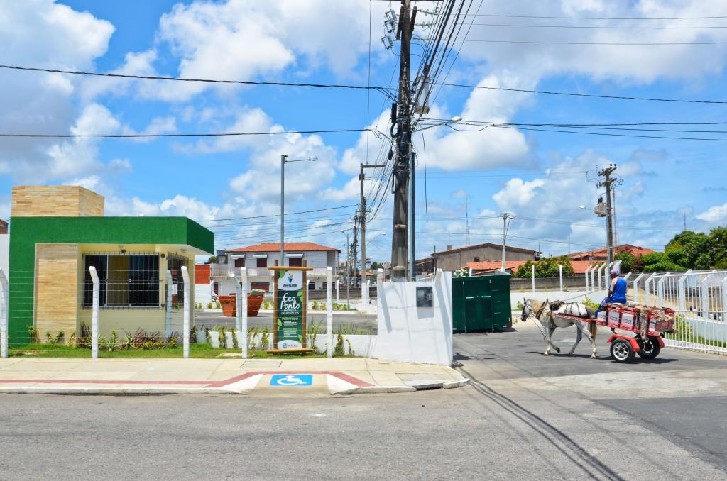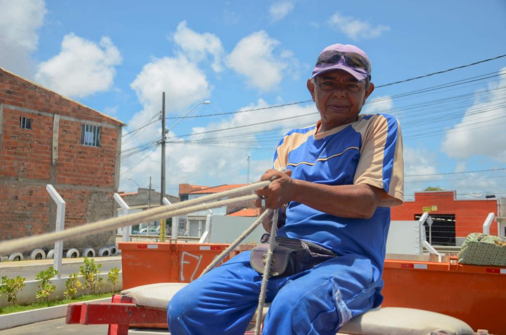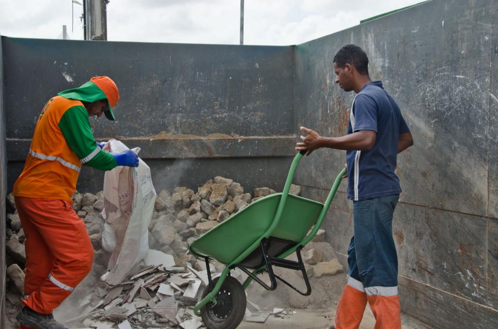 Os resíduos da construção civil, levados no carrinho de mão por Jonatan, foram recebidos pelo trabalhador da Emsurb, Valmir Lima. É assim todas as vezes que chega alguém no Ecoponto. Valmir verifica e direciona ao local certo. Ele informa que é crescente o número de pessoas que hoje usa o espaço para o descarte, inclusive para deixar material para a coleta seletiva.