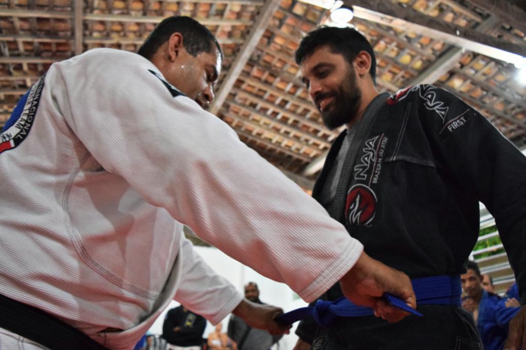 "Hoje se dá o complemento de um trabalho que a gente já vem realizando com esses alunos durante mais de um ano. É o reconhecimento pelo esforço, dedicação e treinos realizados por cada um dos graduandos", afirma o faixa preta e professor do projeto, Anderson Clay Alves da Hora.