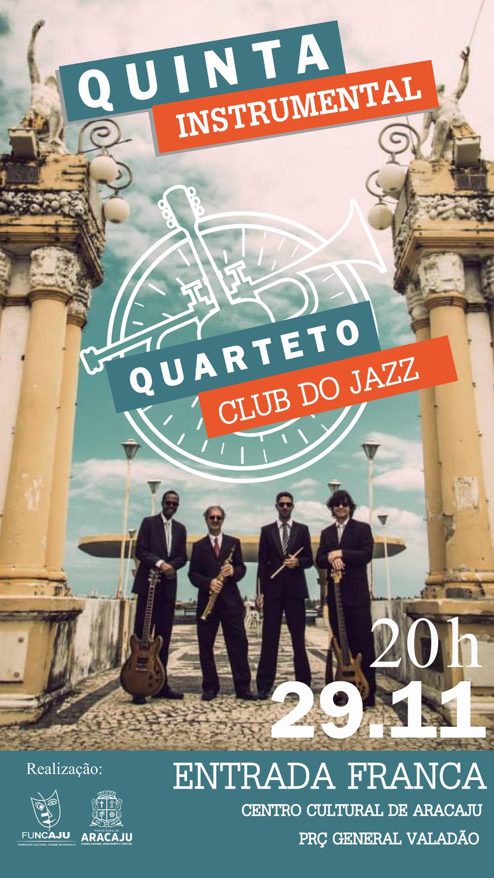 Acostumados a tocar em eventos, bares, pubs e restaurantes, o Quarteto Club do Jazz fará sua primeira apresentação no Quinta Instrumental e promete um show repleto de entrega e emoção. “Nós do quarteto agradecemos à Prefeitura e à Funcaju a oportunidade de mostrar o nosso trabalho nesse projeto que acreditamos ser uma grande iniciativa de propagação de cultura para o povo sergipano. A música instrumental não tem muito espaço na mídia e essa iniciativa é muito importante, tanto para os músicos, quanto para a população que gosta desse estilo musical”, ressaltou o compositor Alejandro Habib.