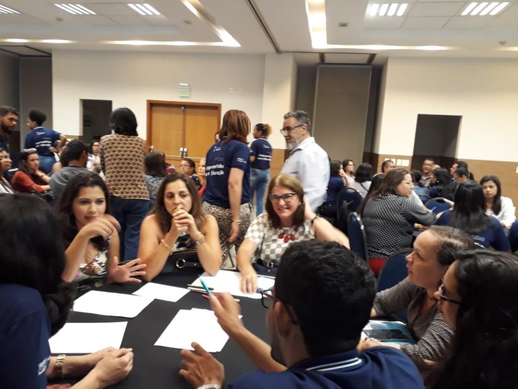 “Esta oficina não é voltada à tecnologia, e sim para pensar os espaços para a aprendizagem. Cada escola tem seus espaços físicos diferentes, suas realidades, mas as equipes podem repensar que o aprendizado não acontece somente na sala de aula. Pode haver ensino e aprendizagem na pracinha do bairro, na praia, enfim, nos espaços da comunidade em que o aluno está inserido”, explica uma das formadoras da oficina, Ana Bárbara Alves.
