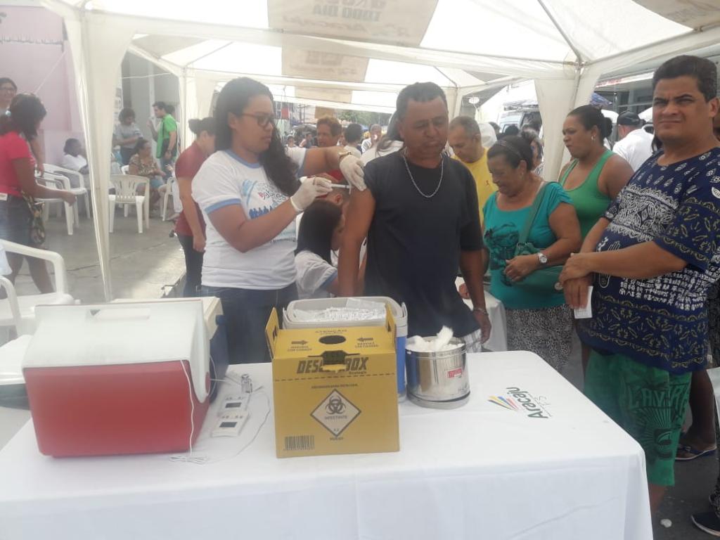 A ação promovida na feira foi realizada pela equipe da Unidade Básica de Saúde (UBS) Fernando Sampaio e contou com diversas atividades, como vacinação contra o tétano, hepatite, triviral (sarampo, rubéola e caxumba), aferição de pressão arterial, teste de glicemia e testes rápidos para HIV, sífilis, hepatites B e C, além da tenda de fitoterapia com orientação do conhecimento de cura através das ervas.