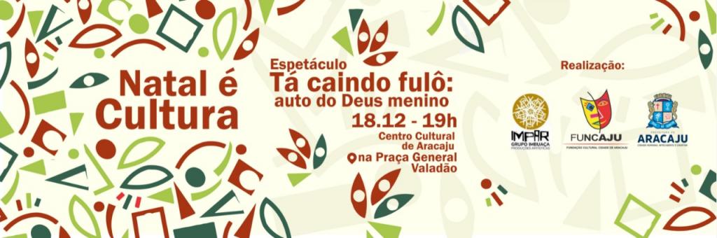 A Fundação Cultural Cidade de Aracaju (Funcaju) convida a todos para o "Natal é Cultura", com a apresentação do grupo teatral sergipano, o Imbuaça. O espetáculo, intitulado ‘Tá caindo fulô: auto do Deus menino’, acontece nesta terça-feira, 18, às 19h, na praça General Valadão, em frente ao Centro Cultural de Aracaju.