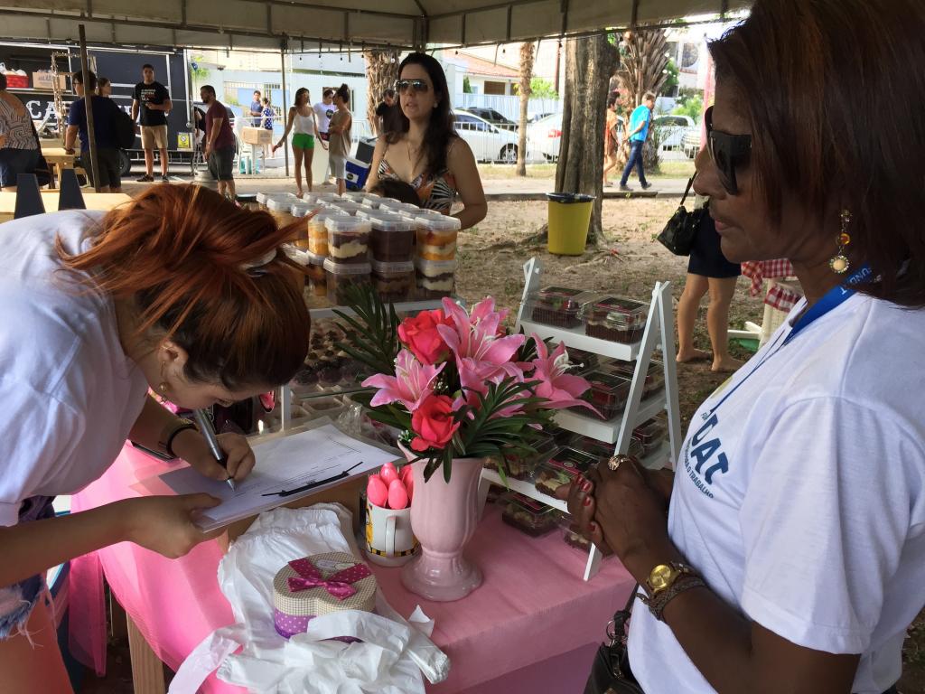 Géssica Fernandes é proprietária do Nu Pote, no qual comercializa bolos com recheio em potes. Para ela, a busca da Fundat pela aproximação com a população é de grande valia, e enfatizou que a formalização do seu negócio é só o início de uma trajetória de sucesso. "Achei muito boa a presença da Fundat no evento, porque muita gente não conhece os serviços, e isso pode desenvolver ainda mais o empreendedorismo dentro da pessoa, mostrar que existe a possibilidade de aumentar seu negócio. Temos pouco tempo de atuação, mas já estamos colocando tudo em prática. Temos nosso plano de negócio e aos poucos esperamos chegar aonde queremos. Normalmente vendemos através de delivery ou encomendas, mas espero que a Nu Pote vire uma franquia", disse.