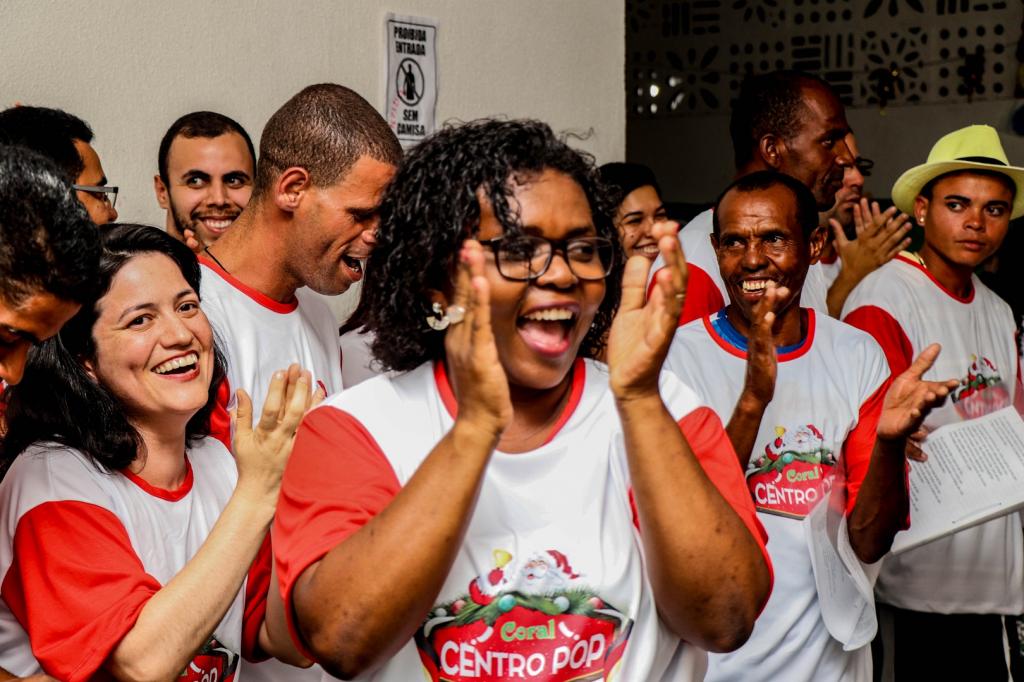 Os usuários do Centro de Referência Especializado para População em Situação de Rua (Centro Pop) receberam na noite desta quinta-feira, 20, uma linda ceia natalina, proporcionada através de uma parceria firmada entre a Secretaria Municipal da Assistência Social de Aracaju e o projeto ‘Flor da Vida’. Mais de 100 pessoas em situação de rua participaram da noite em alusão ao período natalino, que foi composta por homenagens e apresentações musicais, a exemplo do Coral do Centro Pop, formado pelos usuários e profissionais da instituição.