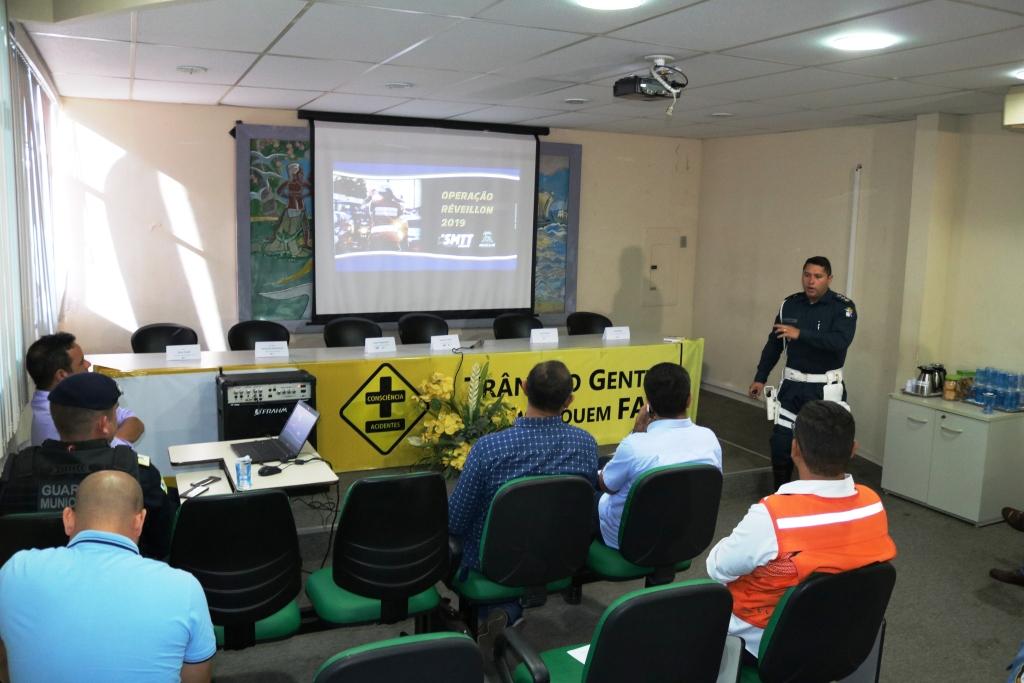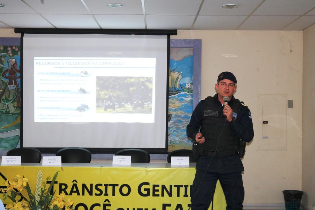 O esquema de trânsito para o Réveillon 2019 foi detalhado pelo coordenador Operacional de Trânsito, major Alexandre Cardoso. O trabalho da SMTT com foco no evento terá início às 15h do dia 31 e só acaba às 5h de 1º de janeiro. “Esta é a nossa maior operação anual. São semanas estudando a melhor dinâmica de trânsito para garantir mobilidade e segurança ao público e aos profissionais que trabalham no evento. Isso envolve não só trabalho de fiscalização, mas também reprogramação dos semáforos e instalação de sinalização provisória”, exemplificou o major. Mais de 80 agentes de trânsito trabalharão na festa.