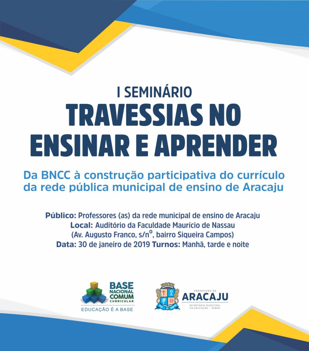 Os professores da rede municipal de Educação de Aracaju terão a oportunidade de participar de uma importante discussão. A Prefeitura Municipal, através da Secretaria Municipal da Educação (Semed), realizará o primeiro seminário “Travessias no Ensinar e Aprender”, que debaterá sobre a construção da Base Nacional Comum Curricular (BNCC).