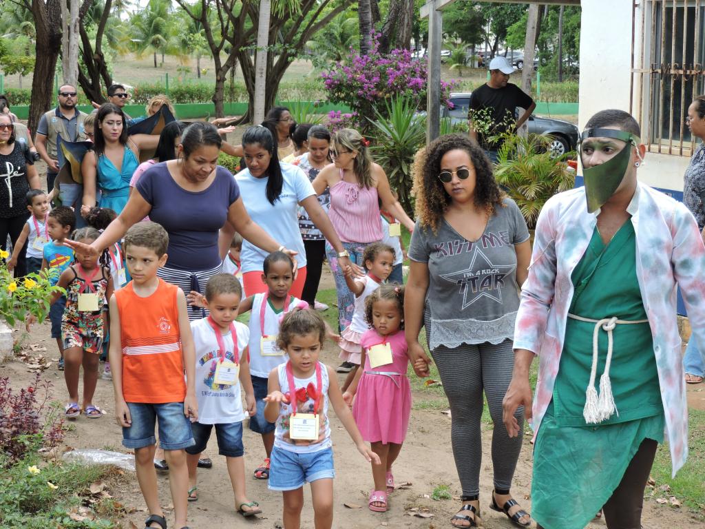 Alunos da Escola Municipal de Educação Infantil (Emei) Professora Joana Maria da Silva, localizada no bairro Farolândia, zona Sul da capital, foram recepcionadas com diversas atividades pela equipe de educação ambiental. Todas as ações fazem parte do projeto Ujacará, uma ação lúdica, de cunho pedagógico que, por meio do teatro, recria histórias a fim de plantar sementes de conhecimento, a respeito da natureza, nas crianças.