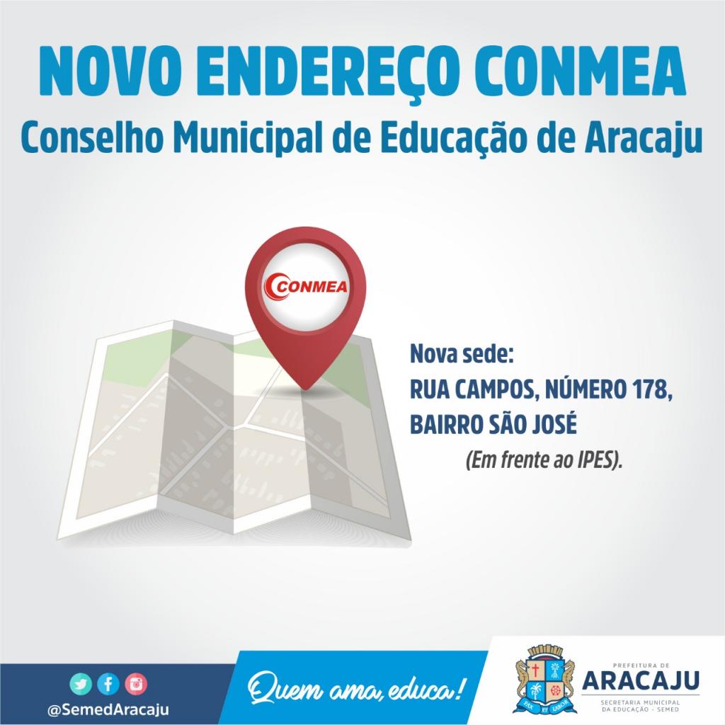 O Conselho Municipal de Educação de Aracaju (Conmea) iniciou as atividades do ano de 2019 em novo endereço. A partir de agora, o cidadão que desejar ir até o órgão deve-se dirigir à rua Campos, número 178, no bairro São José. O novo local atende às necessidades do Conselho, com salas para as sessões plenárias e para o trabalho dos técnicos e assessores.