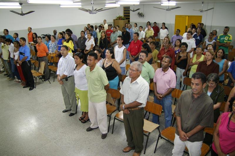 Os novos 109 delegados do Orçamento Participativo (OP) tomaram posse na noite dessa sexta-feira, dia 26, em solenidade realizada pela Prefeitura Municipal de Aracaju no Centro de Aperfeiçoamento de Recursos Humanos da Secretaria Municipal de Educação. Durante todo o sábado, os empossados de 31 bairros da cidade vão discutir no XIV Fórum dos Delegados do OP as 90 maiores demandas da capital - apontadas durante as plenárias realizadas desde o início do ano - e definir a escala de prioridades que deverá ser seguida pela administração municipal para realizá-las. "Esta é mais uma etapa da construção histórica da cidadania em Aracaju. A experiência prática demonstrou ao longo de cinco anos e quatro meses a justeza das nossas convicções, porque quem faz o progresso chegar é a vontade, a união e a luta do povo. Nós podemos de fato mudar o mundo, o país, o Estado e Aracaju é hoje a capital nordestina da qualidade de vida. Este não é um discurso vazio, uma propaganda oca, porque a nossa experiência aqui é vitoriosa", analisou o secretário Bosco Rolemberg, chefe de Gabinete do prefeito Edvaldo Nogueira e seu representante na posse. Ainda nesse sábado, os delegados vão eleger 18 representantes para integrar o Conselho do Orçamento Participativo para deliberar no gerenciamento do OP em Aracaju. A Prefeitura terá 12 membros indicados para compor o Conselho. "É claro que, além da vontade política da administração, o compromisso com um programa de ações que corresponda às reais necessidades do município, conjugando interesses de mulheres, trabalhadores, empresários, comerciários, estudantes; enfim, de todos os que vivem nela. Mas é fundamental colocar em primeiro lugar as necessidades dos mais pobres", afirmou Bosco Rolemberg. O secretário extraordinário de Participação Popular, Rômulo Rodrigues, apresentou a palestra que foi dada pelo deputado estadual Francisco Gualberto e explicou que o trabalho do OP neste momento é também educar os delegados para o trabalho que eles terão que desenvolver em parceria com a Prefeitura. "Gualberto já foi vereador também e está mais do que qualificado para esclarecer que caminhos as demandas selecionadas vão percorrer até serem aprovadas definitivamente e inclusas no orçamento do município para 2007", disse. O Fórum de Delegados também vai contar com uma palestra do secretário municipal de Governo, Sílvio Santos, que foi o primeiro secretário extraordinário da Prefeitura de Aracaju, ainda na gestão do ex-prefeito Marcelo Déda. Ele vai debater com os delegados as experiências do Orçamento Participativo em todo o Brasil. Sílvio Santos é também ex-secretário Nacional de Articulação Social da Presidência da República. Para o representante dos delegados na solenidade, José Ariautel (da Zona de Expansão), o "importante é defender os interesses coletivos não só de cada bairro, mas de todos os aracajuanos", disse ele ao ler o termo de compromisso de posse. O presidente da Fundação Municipal do Trabalho (Fundat), Edson Caetano, também participou do evento.