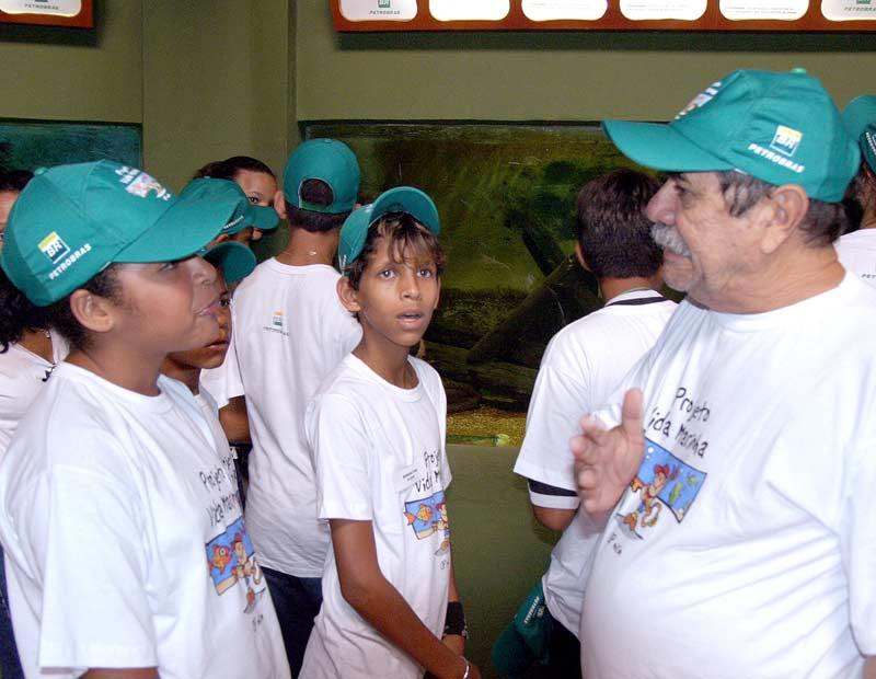 Na manhã do sábado, logo bem cedo, as crianças já se enfileiravam na porta de entrada do Oceanário de Aracaju. Devidamente uniformizadas traziam no peito o tema do projeto ´Vida Marinha´, desenvolvido pela Secretaria Extraordinária de Participação Popular (SEPP) com os participantes do Orçamento Participativo Mirim. Para a grande maioria das cerca de 50 crianças presentes essa foi a primeira oportunidade de ver de perto espécies do fundo do mar. A iniciativa foi possível através de uma parceria da Prefeitura de Aracaju com a Petrobras/Fapese, patrocinadora do que foi além de um passeio, uma aula de meio ambiente e preservação da vida. Apesar de ser um lugar voltado para o oceano, o local também possui alguns exemplares de peixes de água doce em cinco aquários. E foi um desses animais, a piranha, que mais chamou a atenção da jovem vereadora Carina Araújo, 13, moradora do bairro Inácio Barbosa. Eu não conhecia o Oceanário, sabia que ele existia, mas nunca tinha vindo aqui e agora eu tive a oportunidade de conhecer os peixes, as espécies que nunca tinha visto, saber do que eles se alimentam, como as piranhas que são carnívoras. Estou adorando tudo e vou aproveitar bem, disse entusiasmada. Quem também participou da visita foi o prefeito mirim Daniel Vinícius, que já conhecia o espaço. É a segunda vez que venho aqui, a primeira foi no mês passado com a minha escola. Já conheci tudo e o que mais gostei foi aquário oceânico e projeto, que é bem elaborado, contou. Sobre os colegas de passeio, muitos que nem sabiam o que era um Oceanário, ele falou com autoridade. Esta é uma grande oportunidade para eles verem o que há no oceano, para que a gente preserve a natureza, pois se a gente destruir, as espécies vão entrar em extinção, completou, mostrando que captou bem as informações passadas pela instrutora. Formando o Cidadão De acordo com o secretário Rômulo Rodrigues, que também participou da visita, esse projeto é um passo a mais do OP Mirim, que não existe apenas como um entretenimento para ocupar os filhos dos participantes das plenárias do Orçamento Participativo (OP). Eu considero o OP Mirim um forno que a cada ano tem que tirar uma fornada de novos cidadãos. O grau de consciência deles é muito grande em relação ao que a gente pensa. É preciso instigar e isso aqui é um espaço de informação. Estamos apostando no cidadão do futuro, disse. O secretário também agradeceu a participação da Petrobras/Fafen como parceira e disse que a SEPP vai buscar novas parcerias para dar continuidade aos projetos como o de hoje, que foi apenas o primeiro de muitos. Para a coordenadora do OP Mirim, Priscila Brasil, a satisfação veio com o sorriso dos meninos e meninas ao entrarem no Oceanário e conhecerem um mundo novo. Para nós e para a prefeitura é bastante gratificante a gente ver a alegria nos rostos deles, em poderem conhecer a vida marinha e saberem da importância da preservação, sendo que muitos deles nunca tiveram essa oportunidade, a nossa gratificação é essa.