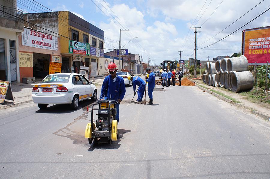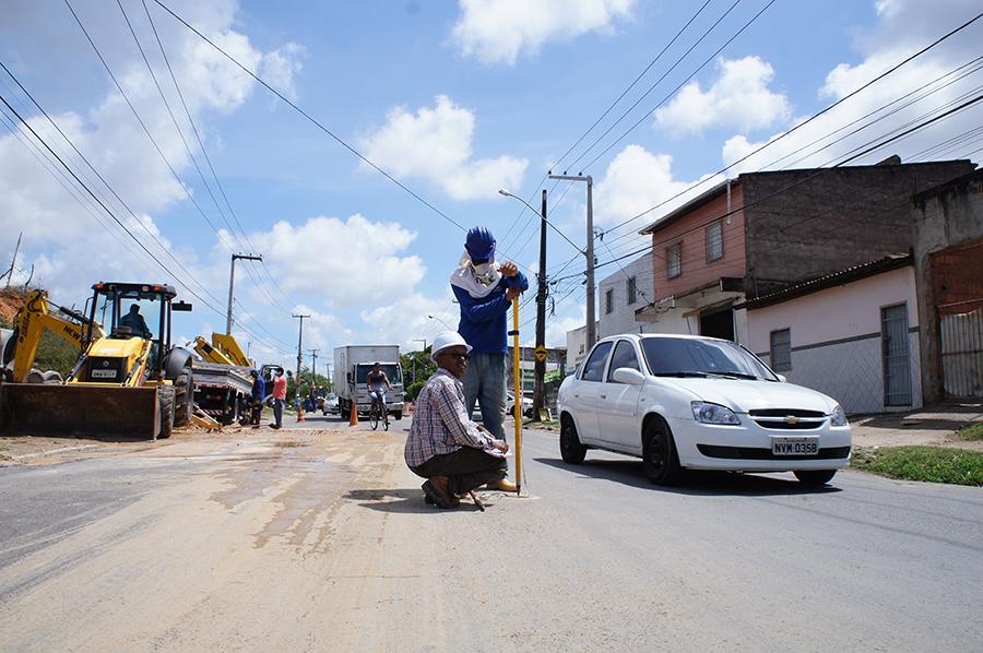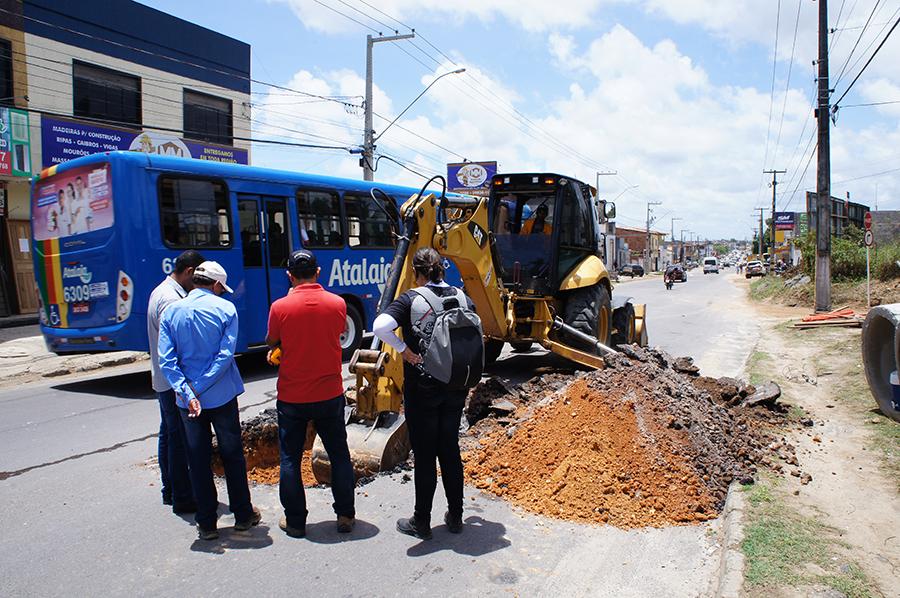 As primeiras ações começaram nas imediações da rótula que dá acesso aos bairros Lamarão e Japãozinho, e todo um esquema de segurança foi montado para resguardar os operários e os condutores. Ao longo da obra, agentes e viaturas da Superintendência Municipal de Transporte e Trânsito (SMTT) organizaram o trânsito e sinalizaram os pontos onde havia máquinas, operários e manilhas que serão colocadas na parte subterrânea da avenida.