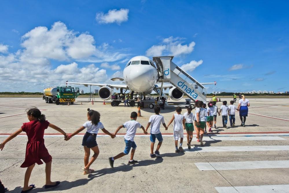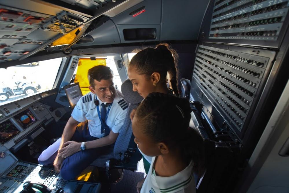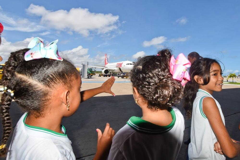 Além do interior da aeronave, os estudantes visitaram o espaço destinado aos bombeiros que fazem plantão no aeroporto, que deram uma demonstração de suas rotinas de trabalho.“Esse passeio pode despertar neles o desejo de desbravar o mundo e as portas desse avião se abrem para despertar uma busca pelo conhecimento da parte da deles”, conclui Lídia.