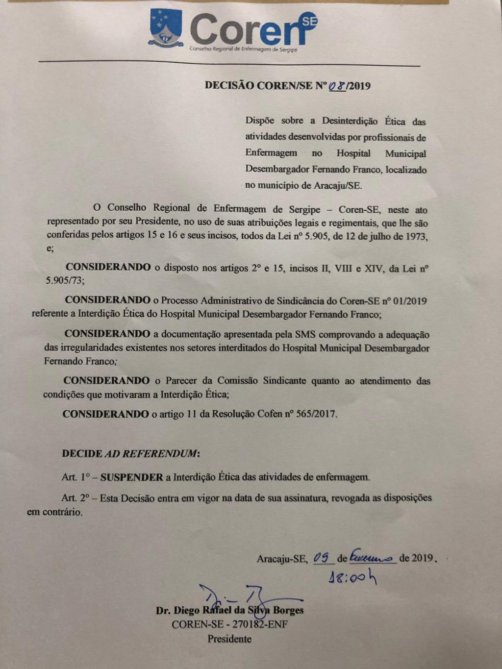 O retorno das ofertas foi possível após a desinterdição do setor clínico (decretada pelo Conselho Regional de Medicina) e da desinterdição de algumas salas (decretada pelo Conselho Regional de Enfermagem - Coren), ocorridas nos últimos dias 8 e 9 de fevereiro, respectivamente.