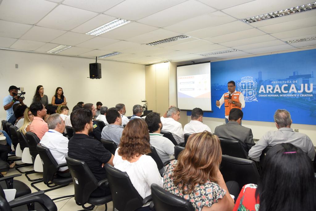 A Prefeitura de Aracaju realizou, na manhã desta quarta-feira, 13, o Simulado de Bancada, que apresentou as atualizações do Plano de Contingência, para enfrentamento às situações adversas, na capital. O objetivo é organizar as ações de prevenção e de enfrentamento aos danos provocados pelas chuvas previstas para o período de abril a agosto de 2019. A programação aprimorou o alinhamento entre os órgãos municipais envolvidos nas ações e reforçou o papel de cada um nesse processo.