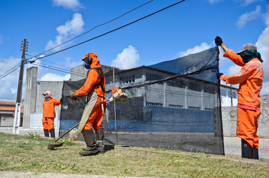 A Prefeitura de Aracaju, através da Empresa Municipal de Serviços Urbanos (Emsurb), realiza, nesta terça-feira, 19, serviços de manutenção, com poda de árvores e limpeza geral no conjunto Augusto Franco, bairro Farolândia. Esta ação, que está acontecendo em sistema de mutirão, tendo em vista as demandas da área, conta com efetivo de 11 agentes.