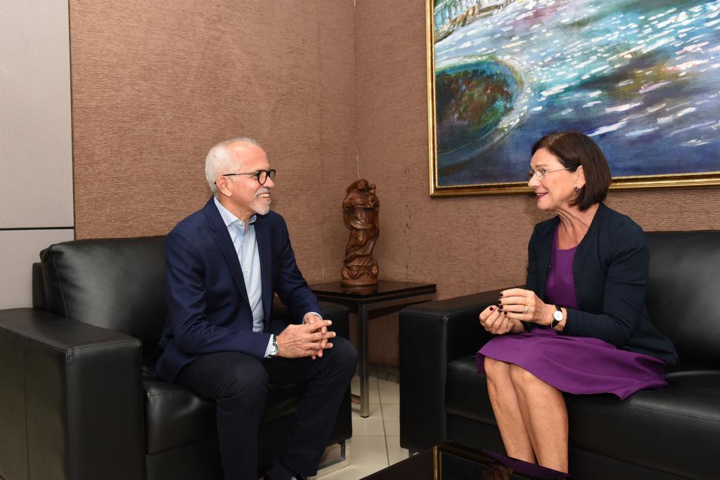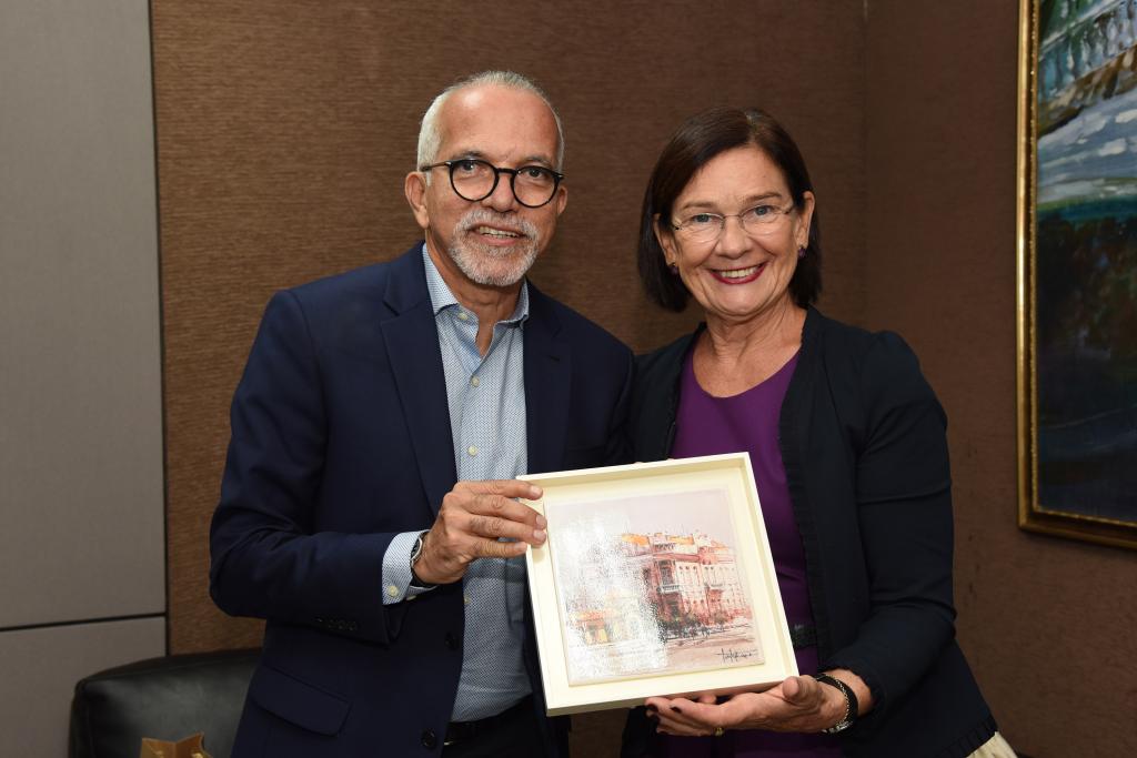 O prefeito Edvaldo Nogueira recebeu na tarde desta terça-feira, 19, em seu gabinete, a cônsul geral da Alemanha em Recife, Maria Konning-de Siqueira. Durante a primeira visita oficial da diplomata à capital sergipana, eles falaram sobre as potencialidades de Aracaju. O gestor municipal também apresentou as principais ações desenvolvidas em sua administração para tornar Aracaju uma cidade inteligente humana e criativa.