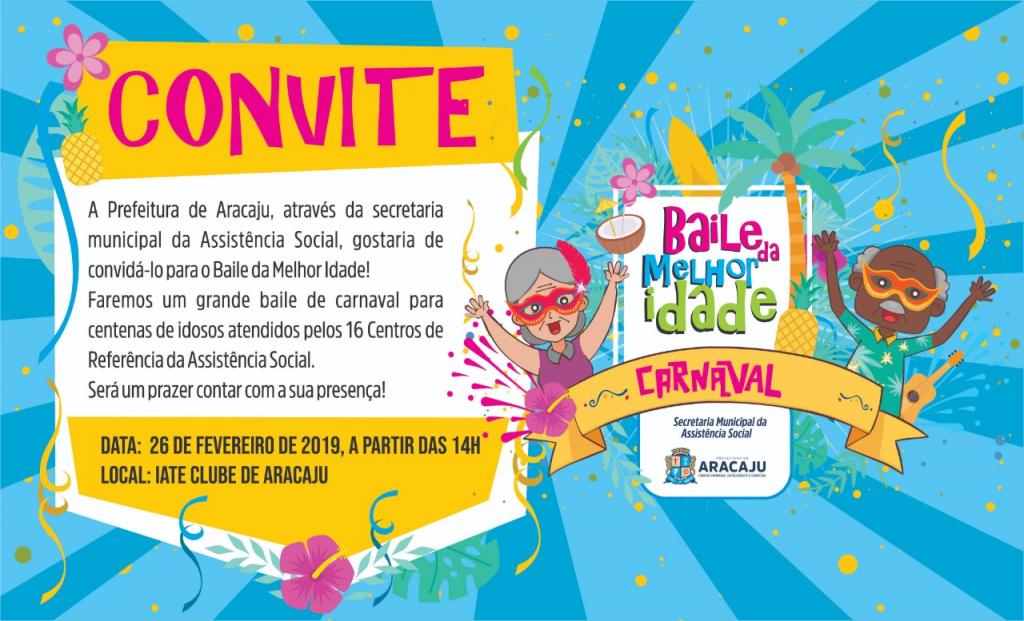 Segundo a secretária municipal da Assistência Social de Aracaju, Rosane Cunha, a promoção do baile cumpre com a missão de melhorar a autoestima dos mais de 800 idosos que participarão do evento. “Vamos promover um animado baile para este público que tanto merece. Será uma tarde de muito brilho, recheada com marchinhas de Carnaval, chuva de confete e serpentina e, claro, com a energia dos nossos senhores e senhoras, que são os grandes donos da festa. Eventos como este são sinônimos de inclusão e mostram que Aracaju é uma cidade humana feita para todos e todas independente da idade, cor ou sexo”, disse.