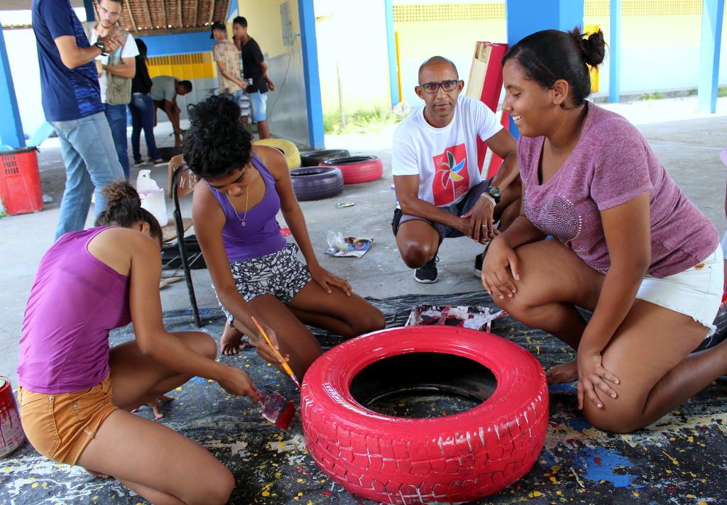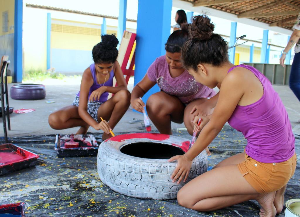 Tintas, materiais recicláveis e adolescentes comprometidos com o ambiente escolar. Na manhã desta terça-feira, 26, os estudantes da Escola Municipal de Ensino Fundamental (Emef) Jornalista Orlando Dantas, no bairro Olaria, participaram de uma oficina de bancos puff, que farão parte de novos espaços de convivência na escola, idealizados pelos próprios alunos. A atividade faz parte do projeto Comitê Estudantil, criado em 2017 pela Coordenadoria de Políticas Educacionais para a Diversidade (Coped), um setor da Secretaria Municipal da Educação (Semed).